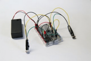 - Download, open and upload to the Arduino, this sketch: http://bit.ly/ZOMBIE-5A Your Arduino will now compare both light sensors and turn on a different L.E.D. depending on which is receiving more light. Cover each light sensor in turn to test it out. This is a big step forward because we’re eventually going to replace these L.E.D.s with motors, and get the Arduino to turn the motors on and off. This will be how we will eventually control our robot.
